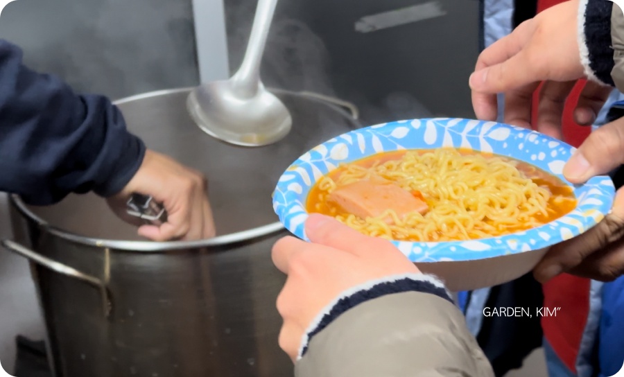 전날 저녁엔 삼겹살에 아침에 라면까지