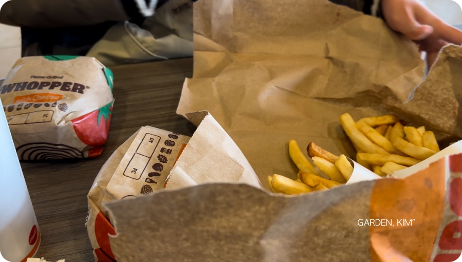 첫날 아침 맥날, 점심 서브웨이, 마지막 날 점심 버거킹.